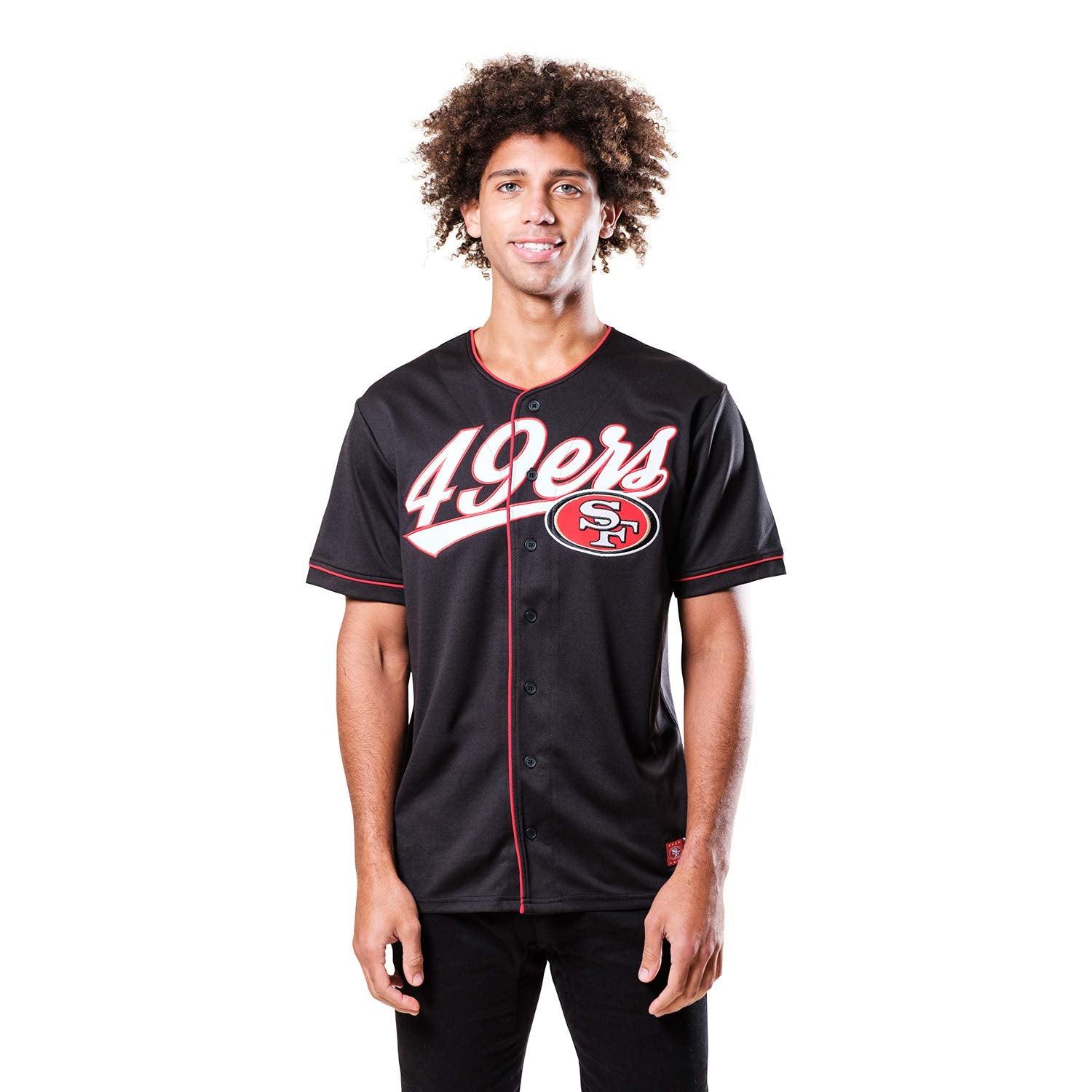 NFL Official Adults Game Day Button Down Baseball Mesh Jersey Shirt - Unisex|San Francisco 49ers