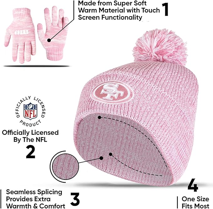 - PRETTY IN PINK: No matter which team you choose, this set comes with a gorgeous pink base color for both the hat and gloves.