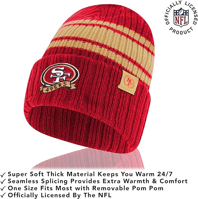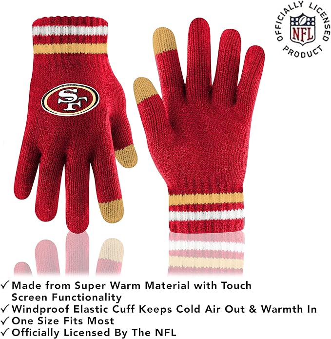NFL Womens Super Soft Team Stripe Winter Beanie Knit Hat with Extra Warm Touch Screen Gloves|San Francisco 49ers