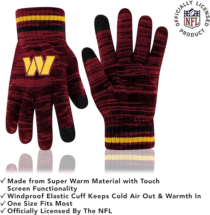 Ultra Game Adults Unisex NFL Official Super Soft Marl Knit Winter Beanie Knit Hat with Extra Warm Touch Screen Gloves|Washington Commanders