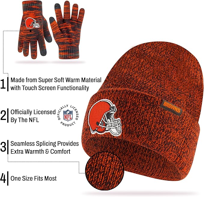 - SUPERIOR WARMTH: Super soft material in your favorite team's core colors keeps your head and hands warm in any weather. An elastic cuff keeps the gloves in place while keeping the snow and wind out.