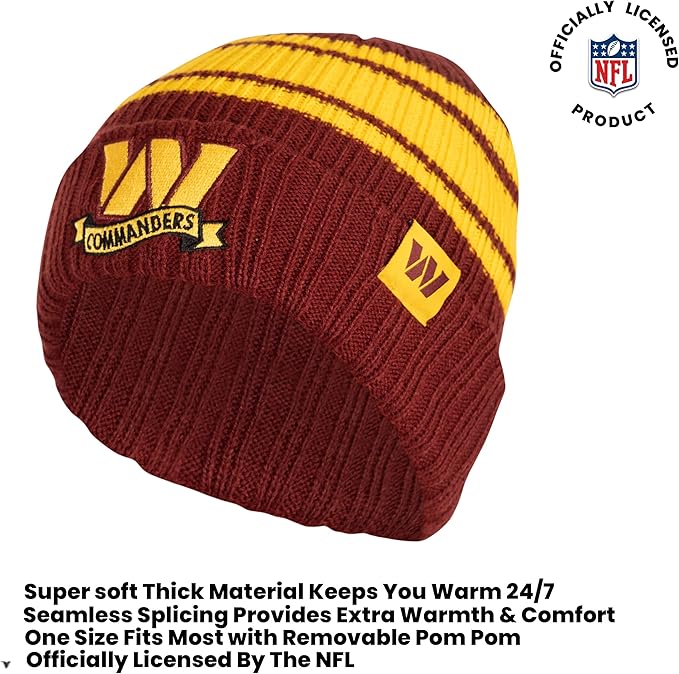 Ultra Game Youth NFL Official Super Soft Team Stripe Winter Beanie Knit Hat with Extra Warm Touch Screen Gloves|Washington Commanders