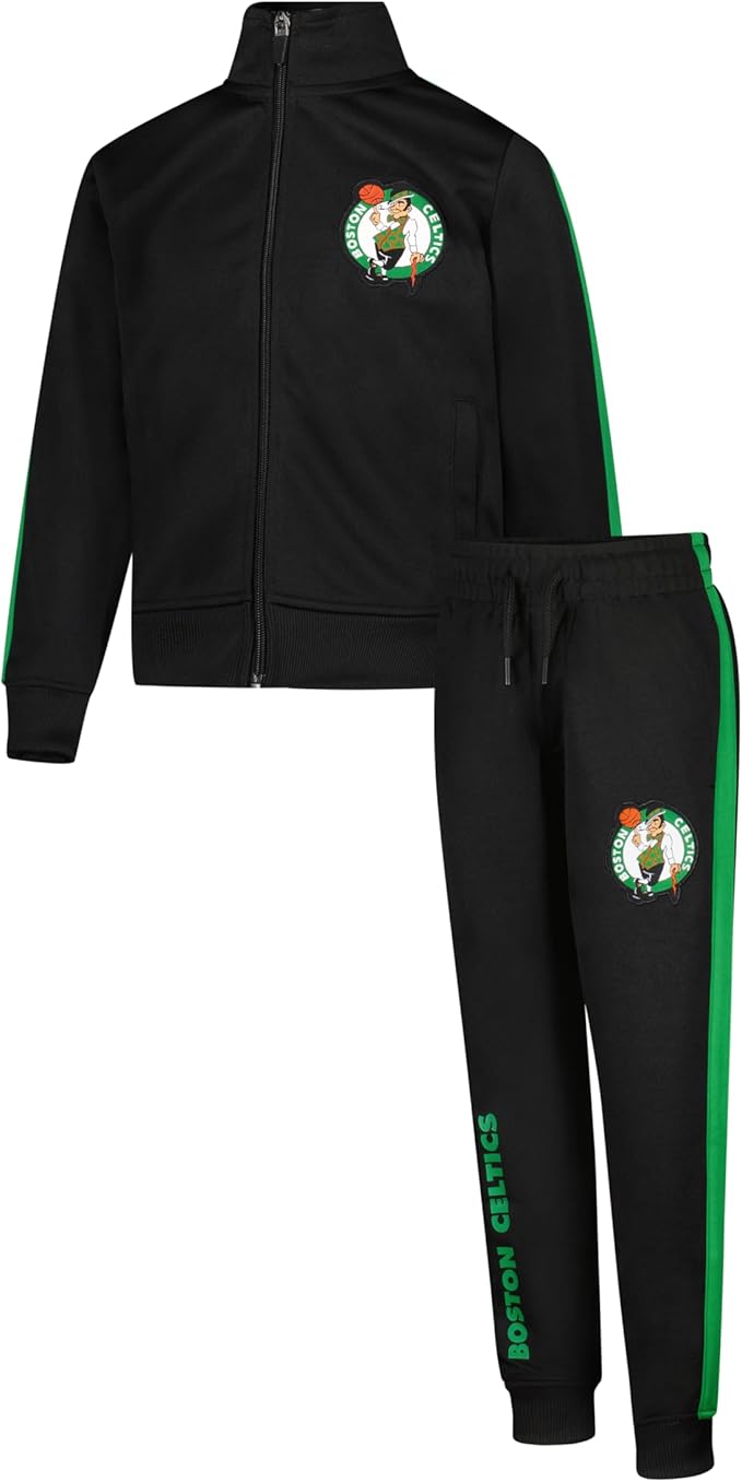 Ultra Game Youth NBA Official Super Soft Full Zip Active Track Jacket and Pants Set, Boston Celtics, Black|Boston Celtics