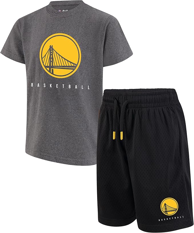 Ultra Game Youth's NBA Official Super Soft T-Shirt & Shorts 2-Piece Set, Golden State Warriors, Heather Charcoal|Golden State Warriors